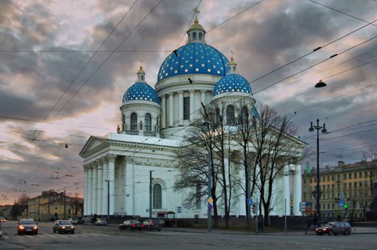 Свято-Троицкий собор построен в стиле позднего классицизма по проекту зодчего Василия Стасова для гвардейского Измайловского полка, освящен в 1835 году. Белое здание с куполами синего цвета - одна из основных архитектурных доминант северной столицы. Его главный купол, украшенный золотыми звездами, виден с моря и некоторых участков на суше за 20 км от города. Храм на Вознесенском проспекте, в прошлом - главная гарнизонная церковь Санкт-Петербурга, вмещает более трех тысяч человек.