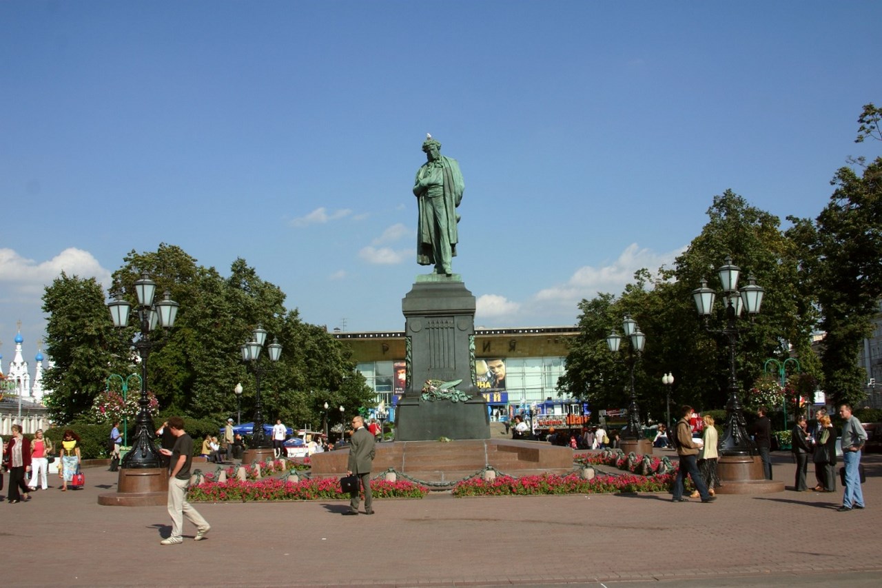 Бронзовый памятник Александру Пушкину, работы скульптора Александра Опекушина, был установлен в Москве 18 июня 1880 года. Первоначально монумент был установлен в начале Тверского бульвара. В 1950 году памятник переместили на противоположную сторону площади.
