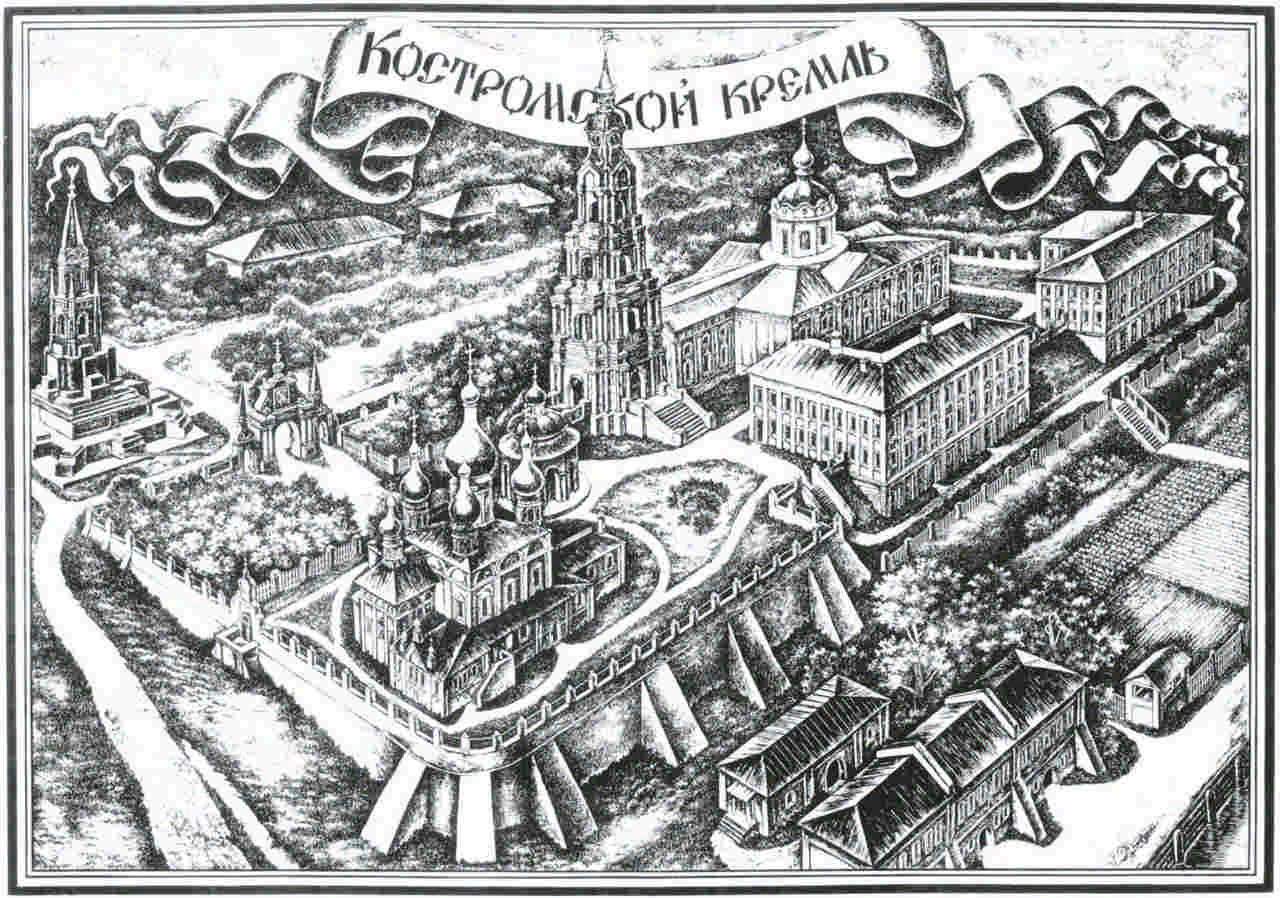 Исторический вид Костромского кремля с главной подъездной стороны