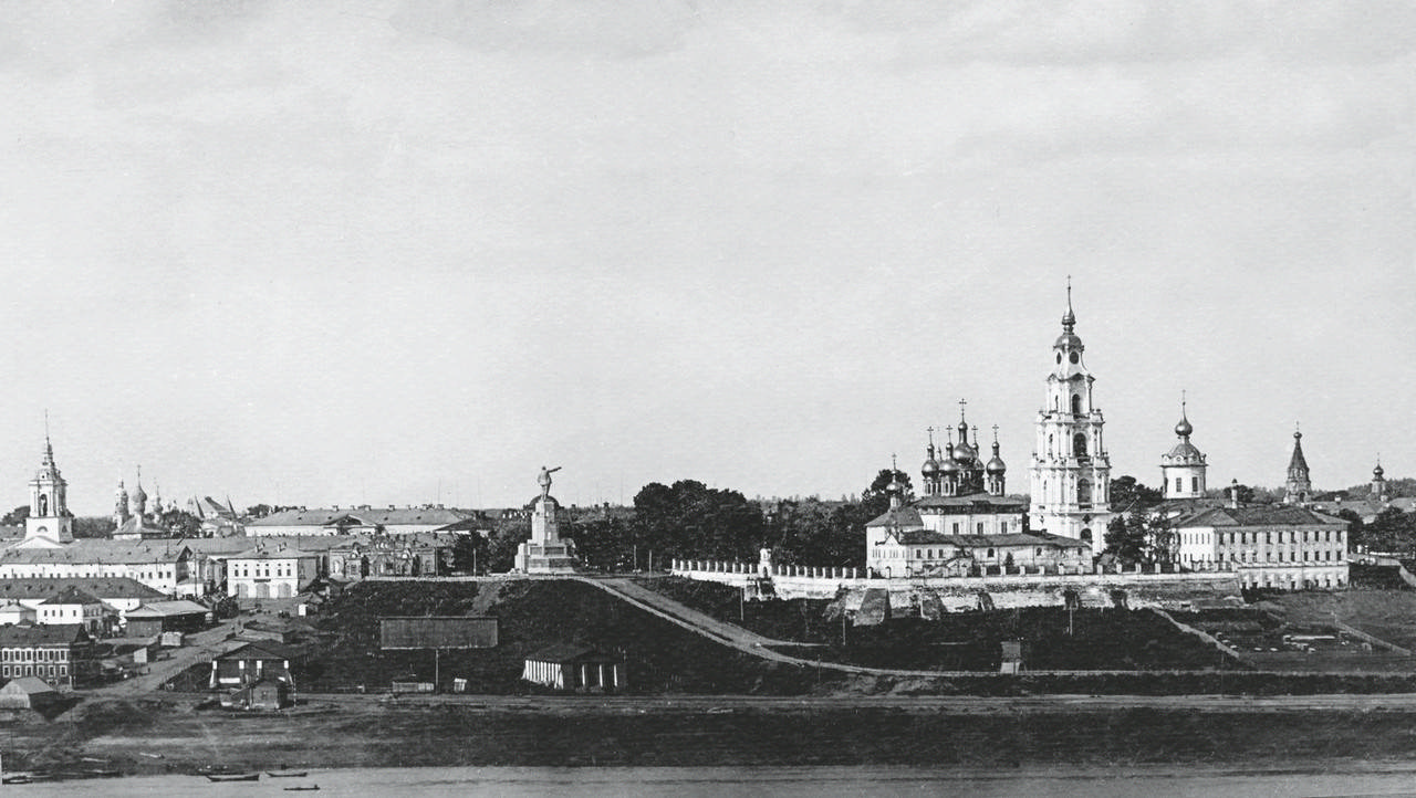 Вид на Костромской кремль со стороны Волги. Памятник вождю уже стоит, но храмы пока не тронуты. 1932 г.