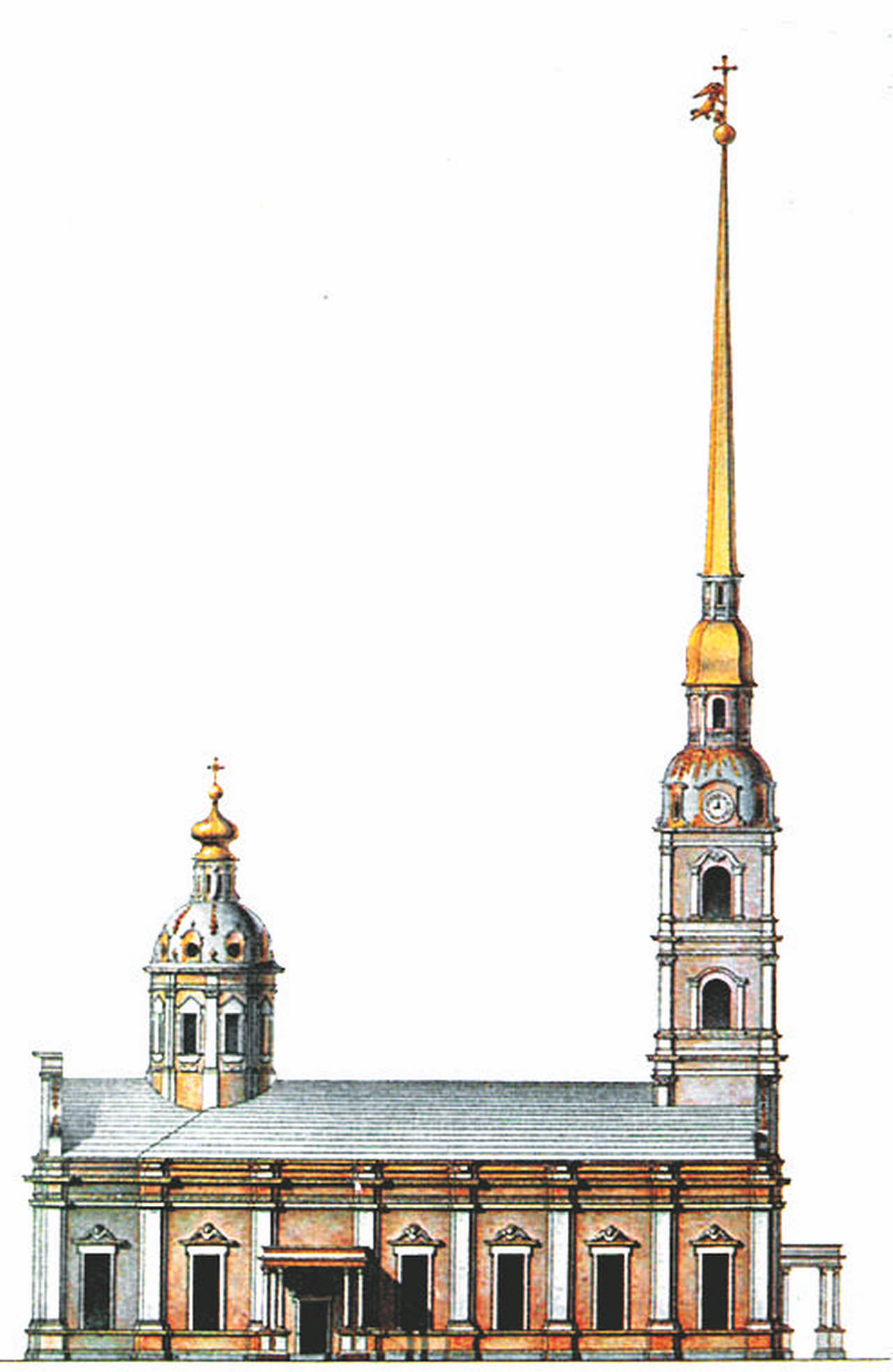 Чертеж южного фасада Петропавловского собора в Санкт-Петербурге