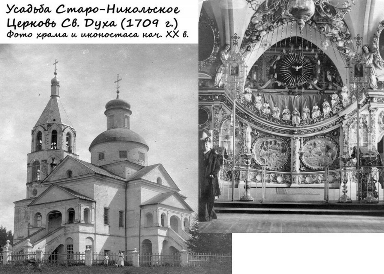 Усадьба Старо-Никольское расположена в поселке Первомайское, который ранее назывался селом Никольским. Сведения об этом населенном пункте начали появляться уже в летописных источниках XIV века. Первой достопримечательностью Никольского стала вовсе не усадьба, а церковь во имя Сошествия Духа Святого на апостолов. Новая Духова церковь была возведена здесь в 1709 году в честь важного для всей страны события – победой русский войск в Полтавской битве, решающим сражением Северной войны. Известно, что до указанного года на ее месте находился небольшой деревянный храм. Инициатива возведения храма принадлежала владельцу села Никольское – видному государственному деятелю Василию Михайловичу Ртищеву.