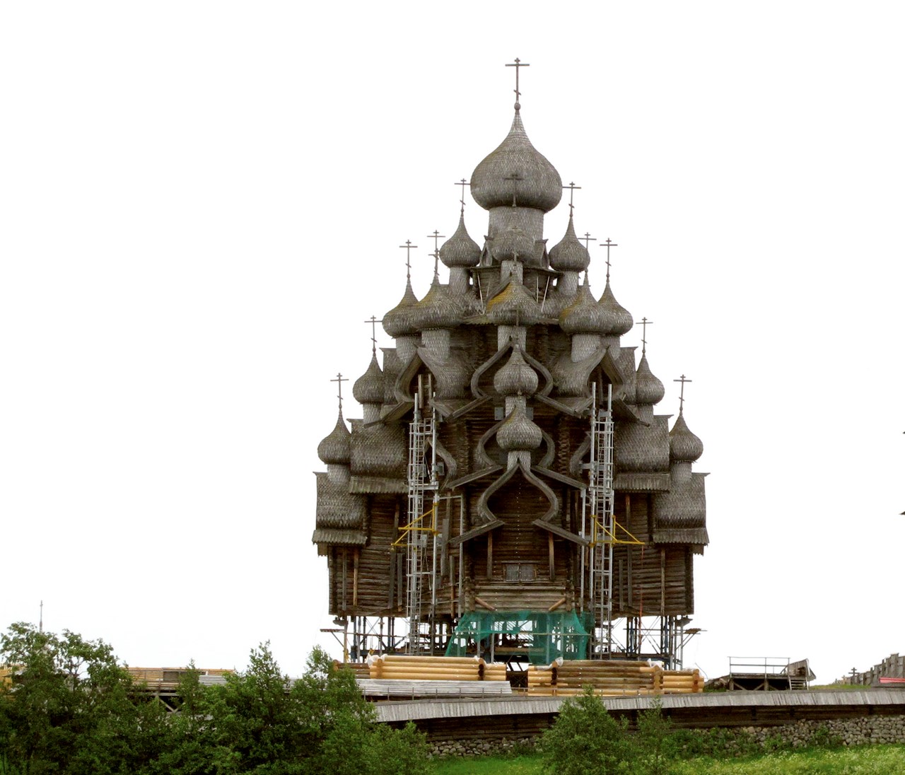 А.Б.: Это непростой вопрос, на самом деле. И, к сожалению, имеющийся опыт не позволяет дать однозначный ответ. Все, что сейчас находится в музеях, было отреставрировано методом переборки. Он позволяет осмотреть каждое бревно, произвести их ремонт, сделать замену, если это необходимо – то есть полностью проверить и отремонтировать всю конструкцию. Однако нельзя не заметить, что при переборке памятник очень сильно теряет в подлинности. Дощатые элементы обычно после разборки не сохраняются, прибитые коваными гвоздями они просто расщепляются. При переборке мы получаем здоровый сруб, но в деталях происходят существенные потери. Метод лифтинга позволяет заменять поврежденные бревна в срубе без его разборки. В России имеется достаточно большой опыт подобной работы, но только на небольших строениях. Насколько, я знаю, около 20 зданий реставрировались подобным методом, и можно сказать, что есть очень хорошие результаты. На высотных церквях метод лифтинга пока не дал качественных результатов, но это не значит, что его нельзя достигнуть, тем более, что подобных работ проводилось мало. По большому счету, главное не столько метод, сколько качество работ. И переборку, и лифтинг бывает, что делают из рук вон плохо, а бывает - на очень высоком уровне. Мое мнение, что у метода лифтинга есть перспективы – он позволяет в значительной мере сохранять подлинность деревянных памятников.
