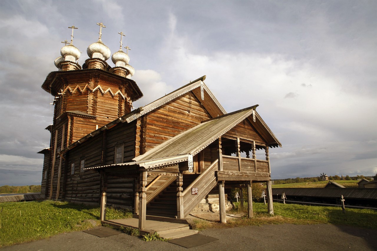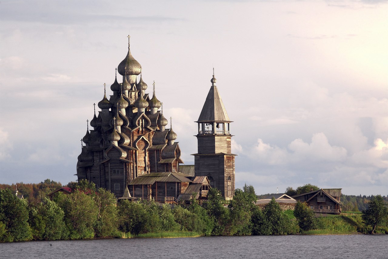 Кижи - остров на Онежском озере в Карелии, на котором расположен всемирно известный архитектурный ансамбль, состоящий из множества деревянных строений: церквей, часовен, домов, хозяйственных построек. Некоторые из этих строений были построены на месте, другие привезены сюда из разных мест. По одной из легенд, Преображенская церковь построена без гвоздей одним топором, который потом мастер выбросил в озеро.