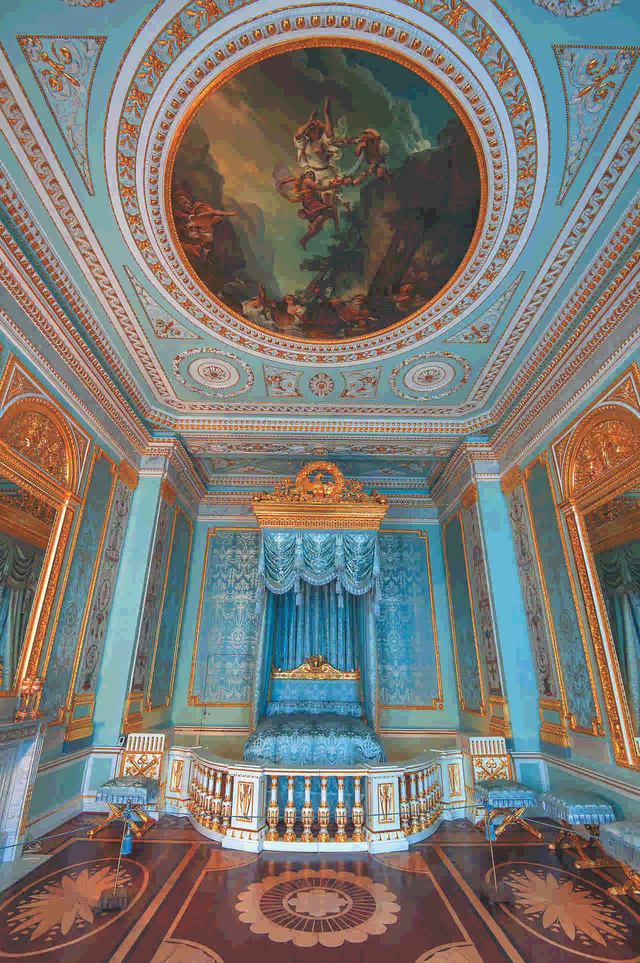 Парадная опочивальня императрицы Марии Федоровны относится к самым совершенным творениям В. Бренны. На стенах архитектор разместил пилястры искусственного мрамора. В простенках между пилястрами были вставлены в рамы панно голубого лионского шелка, затканного серебряной нитью. Плафон посвящен сюжету «Свадьба Психеи».