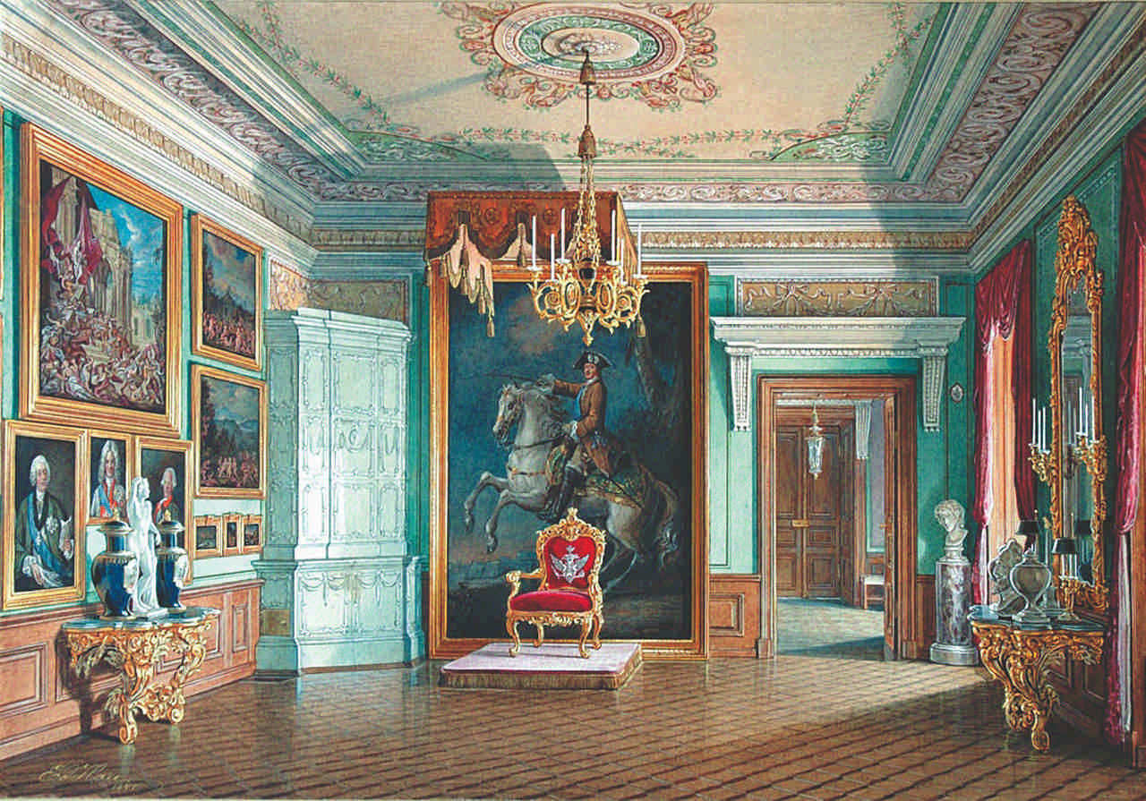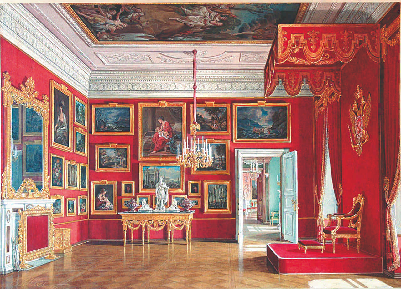 Благодаря акварелям сделанным художником Эдуардом Петровичем Гау в семидесятых годах XIX века мы сегодня можем увидеть всё великолепие внутренних интерьеров павловского дворца.