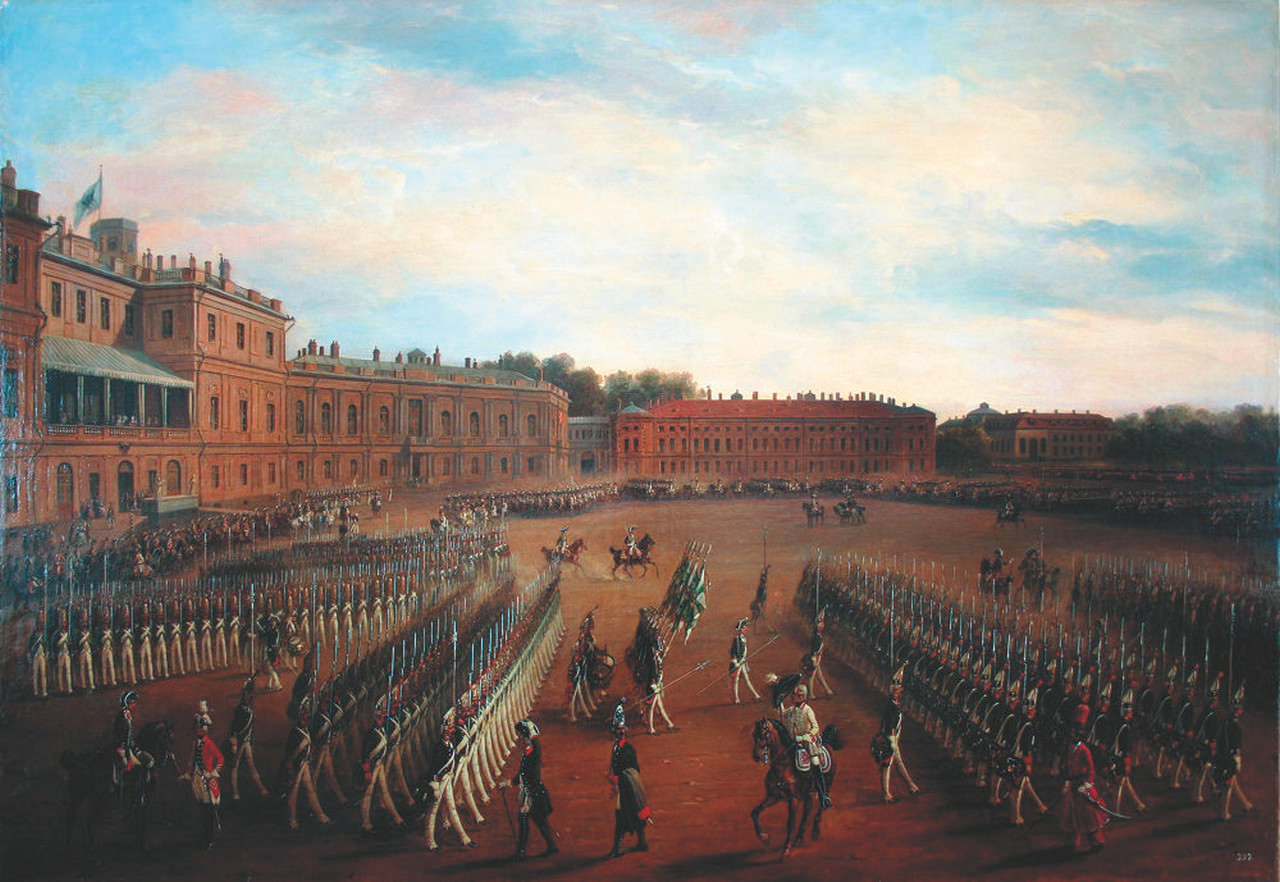 Манёвры при Павле I в Гатчине, О.Г. Шварц, 1837 г.