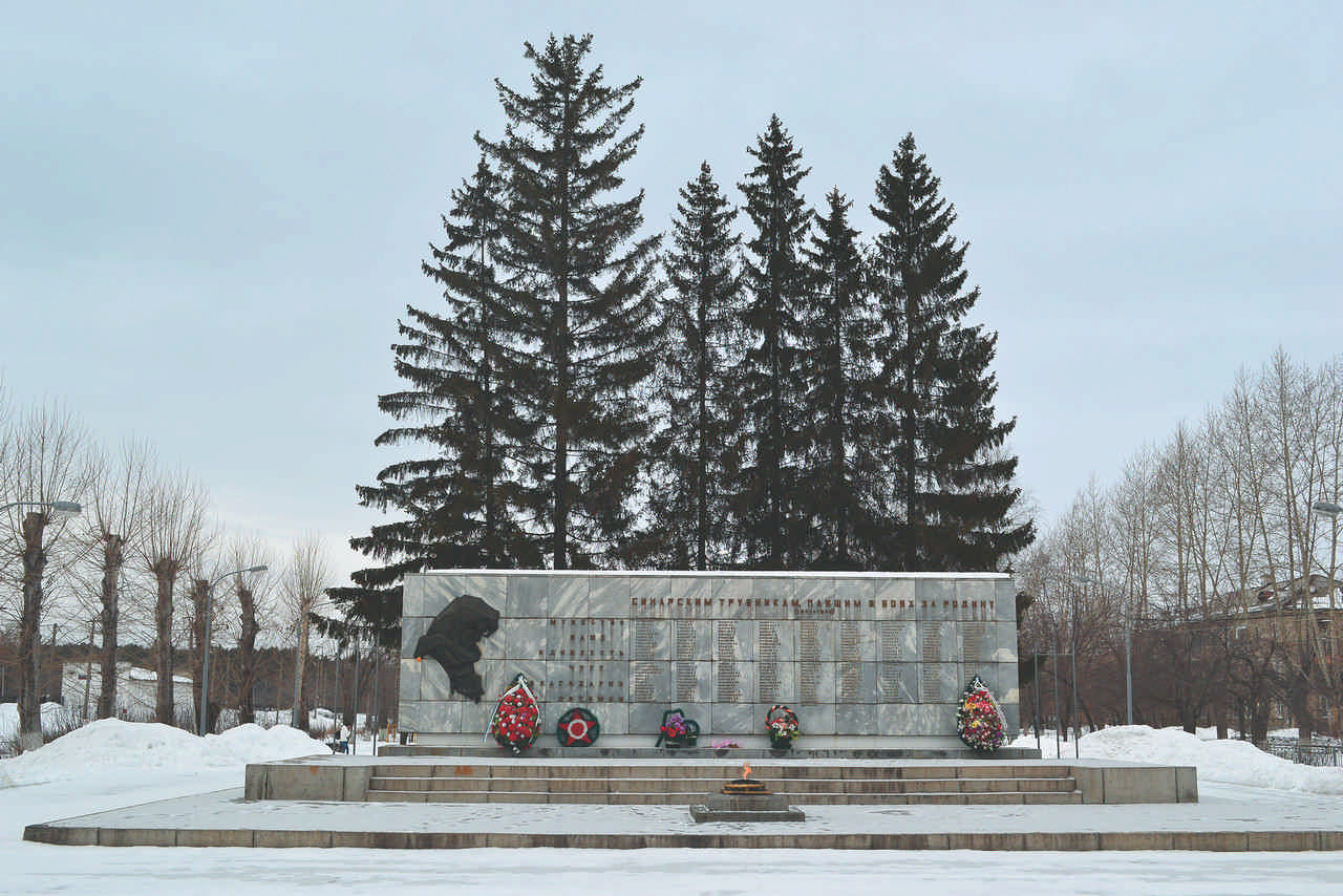 Среди них 5000 работников Синарского трубного завода. 9 мая 1966 года установлен монумент-обелиск синарским трубникам. Авторы - архитектор Ф.Д. Горшков, художник В.В. Пермяков. В скорбном списке более 200 фамилий трубников. В последующие годы в этом списке появятся еще более 300 имен горожан, отдавших жизнь за свободу Родины. 9 мая 1975 года во второй части мемориала синарских трубников в честь 30-летия Победы в Великой Отечественной войне 1941-1945 гг. был открыт памятник-монумент Неизвестному солдату. Постамент монумента изготовлен из символических орудийных стволов и снарядов. На нем – фигура воина.