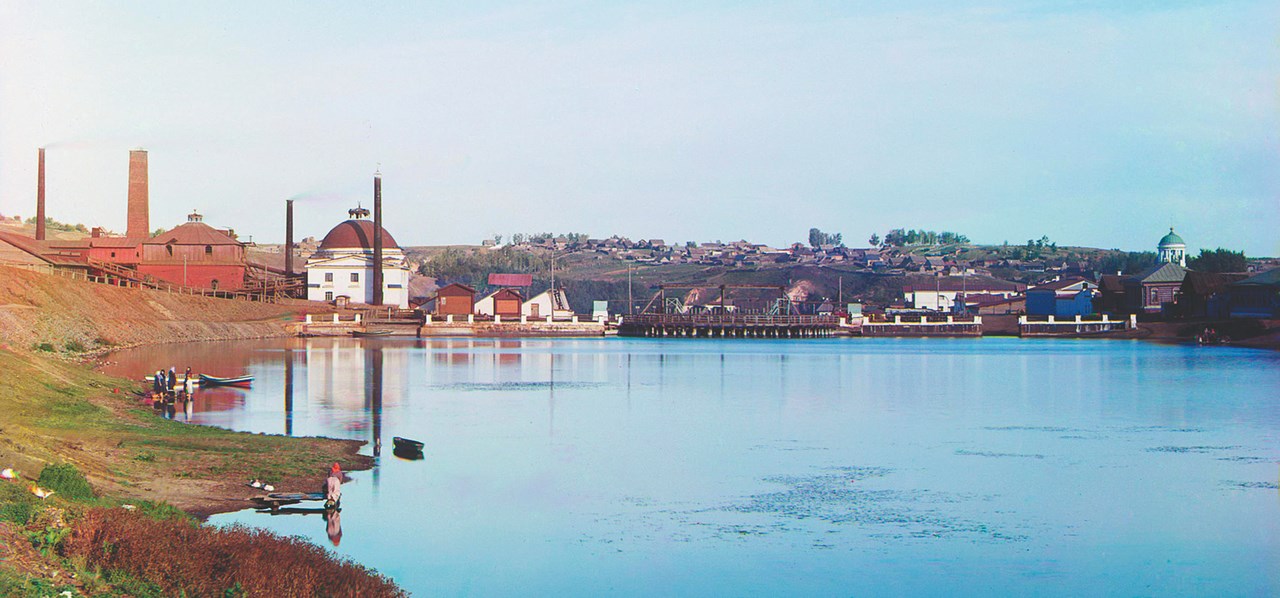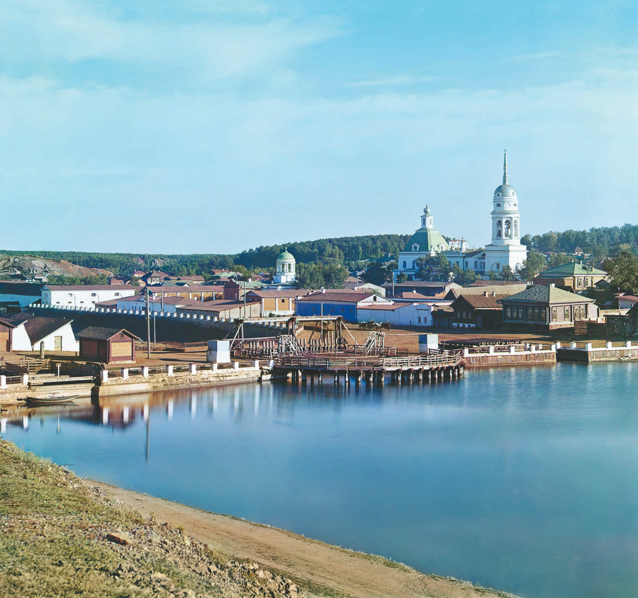 С. М. Прокудин-Горский. Каменский завод с рабочими поселениями. пруд и старая часть города.