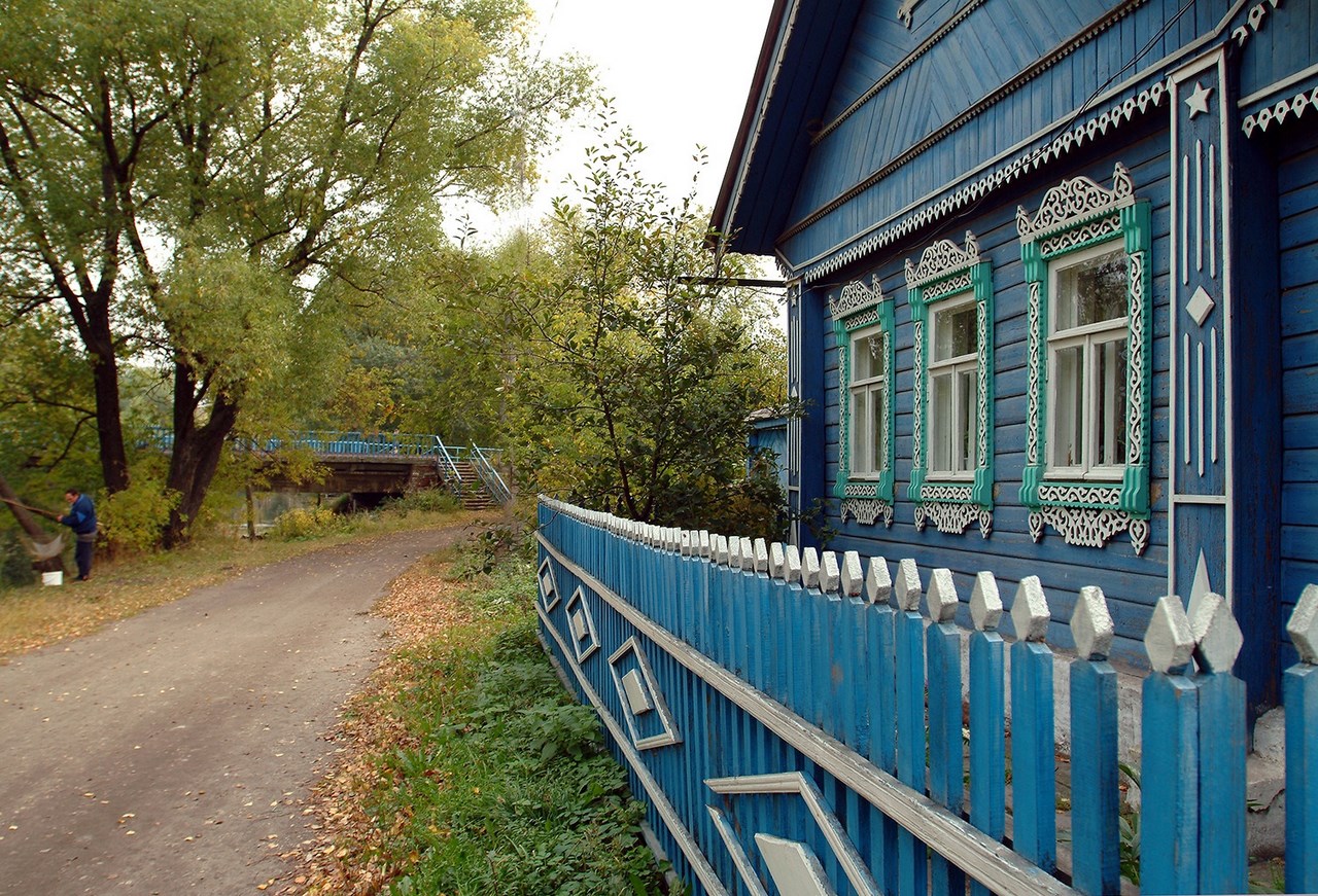 Поначалу ничего вроде бы и не предвещает никакого города. А избы с резными наличниками выглядывают с настороженным любопытством из зарослей рябины с красными фейерверками ягод, ивы, яблонь и не разберешь еще чего, словно в какой-нибудь Богом забытой деревне.