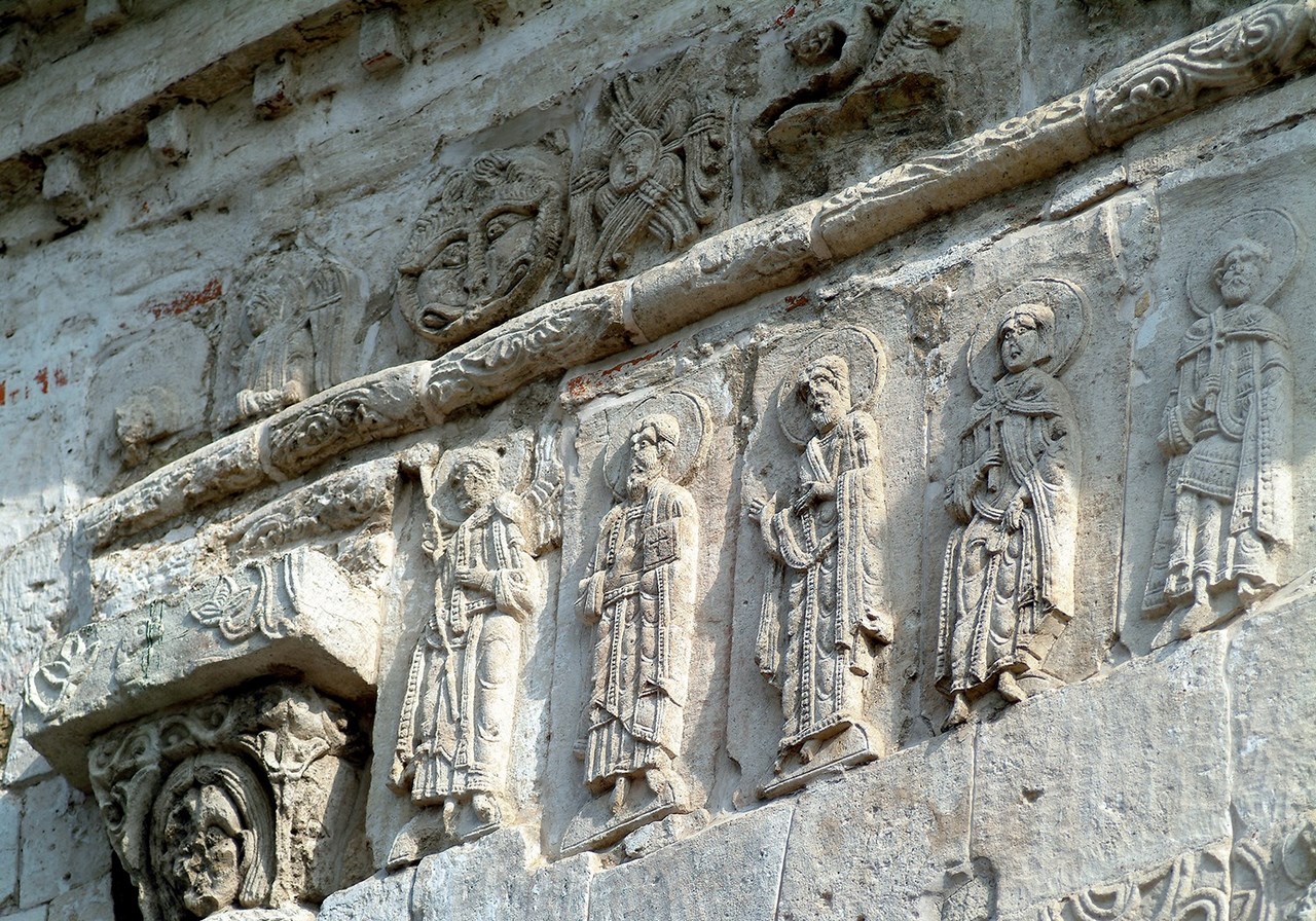 С тех самый достопамятных времен роспись храма стала загадкой. Поскольку некоторые рельефы исчезли, или просто утратили свою целостность. Собор, словно врос в землю. Усох. Наше время добавило к разбежавшимся куда глаза глядят райским зверям с кошачьими мордами и птицам, немало белых страниц. Камень осыпается. Черты рельефа все более стираются или становятся случайными. Собор напоминает русский иероглиф. Фрагменты письма, лица, лики, кружева, словно виньетки на полях непрочитанной книги.