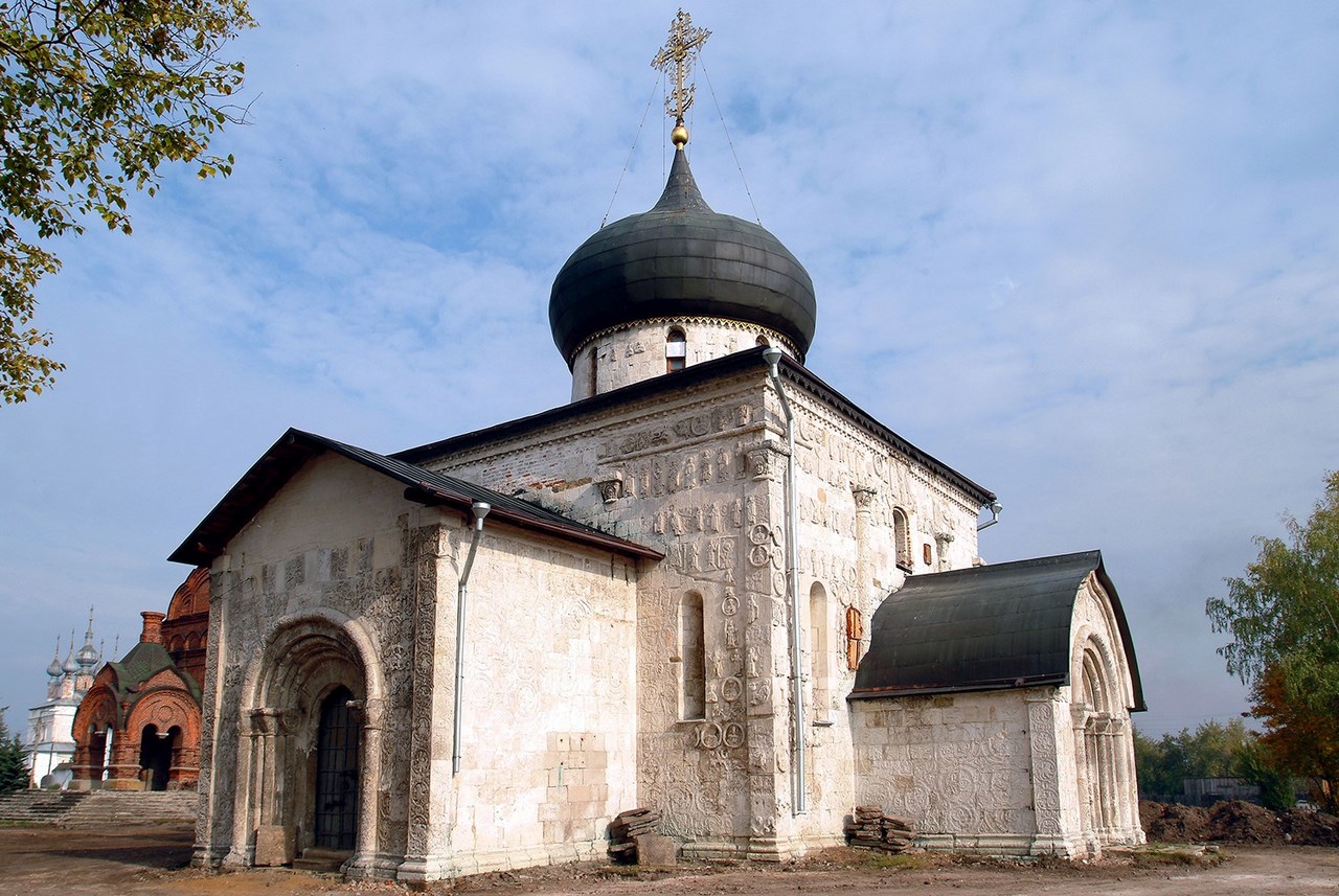 Еще одно не менее загадочное обстоятельство. Рака с мощами создателя этого дивного храма красоты неописуемой (действительно неописуемой, ни репродукции, ни ухищрения языка не способны передать и сотой доли того благоговения, когда смотришь на собор на фоне багряного заката), благоверного князя Святослава III Всеволодовича, сына великого владимирского князя Всеволода Большое гнездо, установлена в Свято-Покровском храме. Храме, построенном в конце XVIII века и, конечно же, более просторном, чем Георгиевский собор. Но довольно в архитектурном смысле безыскусном.