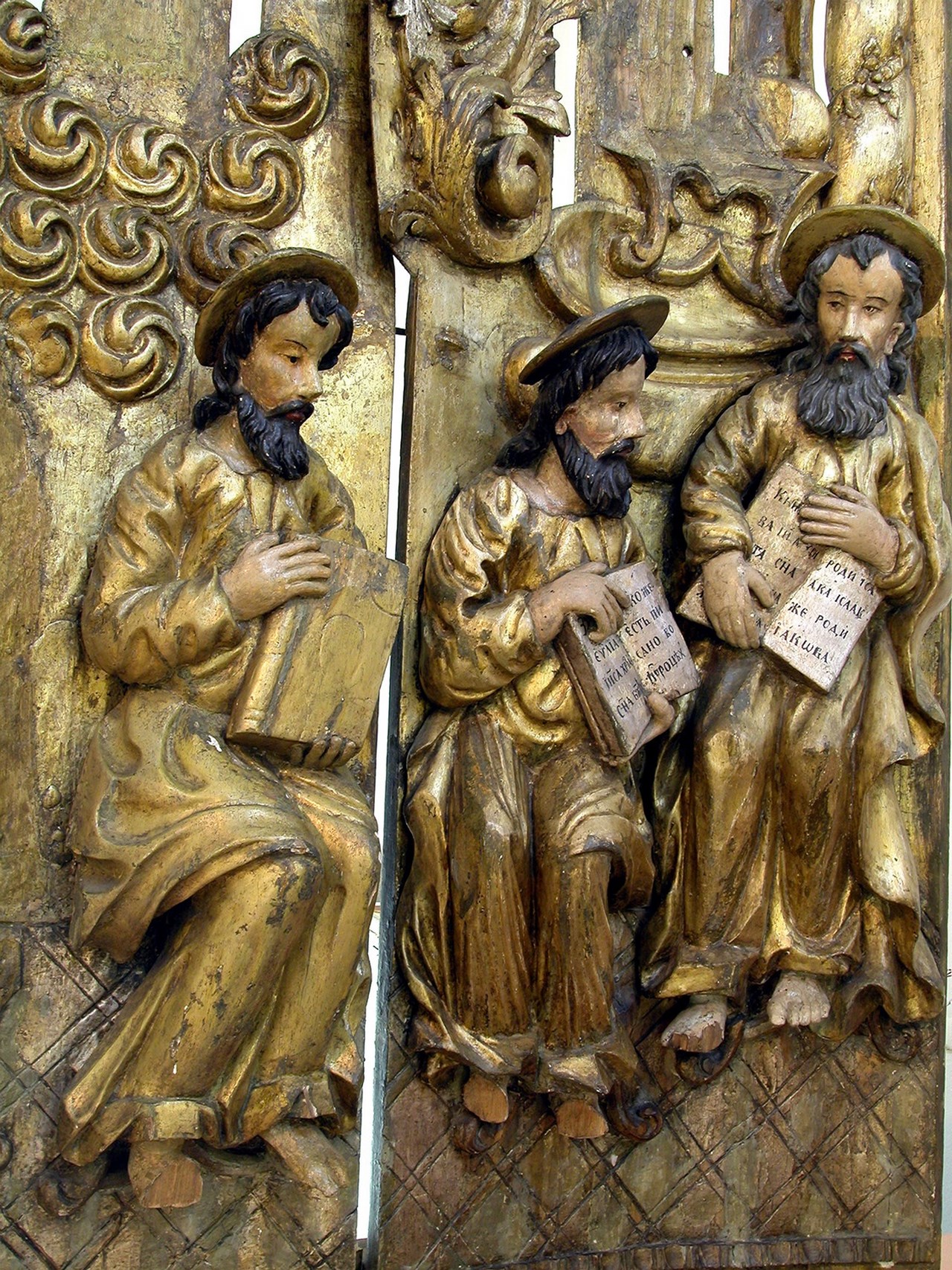 Кроме того, в ажурный узор, сотканный из изломов райских растений и загадочных животных, были вплетены евангельские сюжеты: «Преображение Господне», «Эфесские отроки», «Даниил во рву львами», «Вознесение Господне» и, пожалуй, центральная композиция, составленная из трех камней – «Распятие». Его еще называют – «Святославов крест». Центральная, поскольку находилась она в центральной закомаре северного фасада, обращенной к городу. Теперь его, как и великолепие фресок, можно разве увидеть внутри собора. Но собор, к сожалению, закрыт для посетителей.