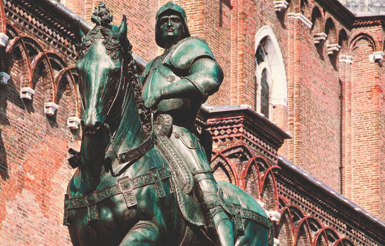 В XV в. кондотьер Бартоломео Коллеони, у которого не было наследников, завещал своё состояние Венецианской республике. И попросил за свою щедрость всего ничего: памятник в собственную честь на площади святого Марка. И Тишайшая выполнила просьбу на бессмертие и ...ничем непримечательный памятник авторитету с большой дороги установили на пьяццете.