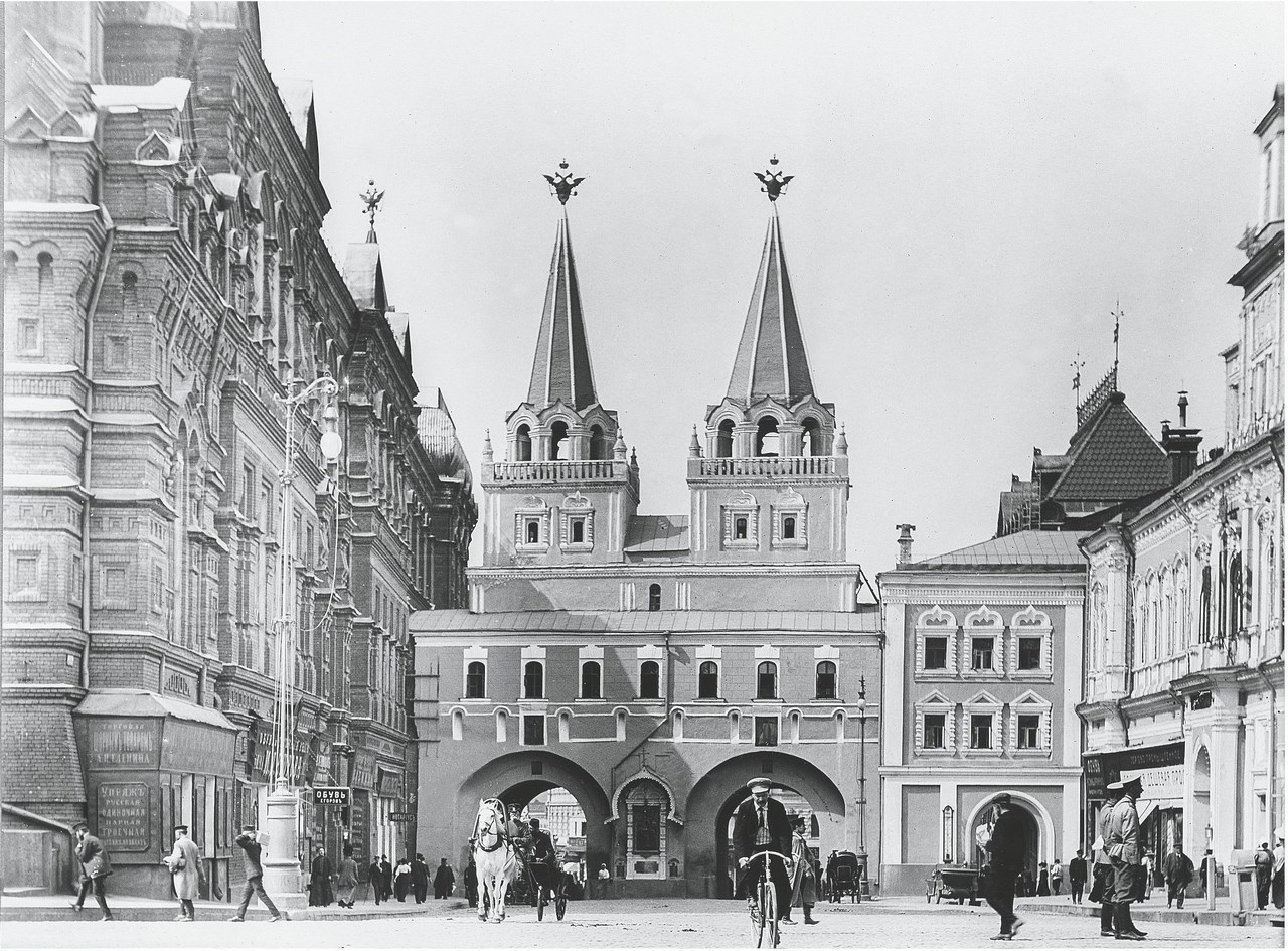 Воскресенские ворота c часовней иконы Иверской Богоматери (фото начала 1900-х гг.) были были воссозданны уже после смерти П.Д. Барановского.