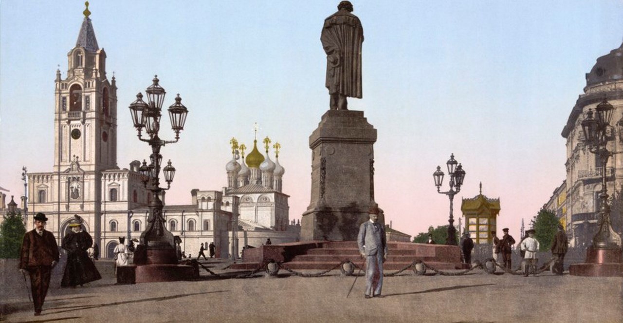 Вместе с обителью снесли и застройку вокруг - знаменитый «дом Фамусова», принадлежавший Римской-Корсаковой, где не раз бывал и Пушкин, храм Дмитрия Солунского на углу Тверской улицы и Бульварного кольца… «Буревестник революции» Максим Горький, чьим литературным псевдонимом назовут Тверскую, предлагал заодно уж снести и памятник Пушкину, как крайне неудачный. Но до этого дело не дошло, в 1950-м Пушкина всего лишь передвинут на место монастыря, на закатанную в асфальт площадь. Здесь к этому времени уже было принято отмечать пролетарские праздники и Новый год - устраивать народные гулянья, базары, елки, аттракционы. Пушкин стал ближе к пролетарской вакханалии и с изумлением взирал на нее со 11-метровой высоты…