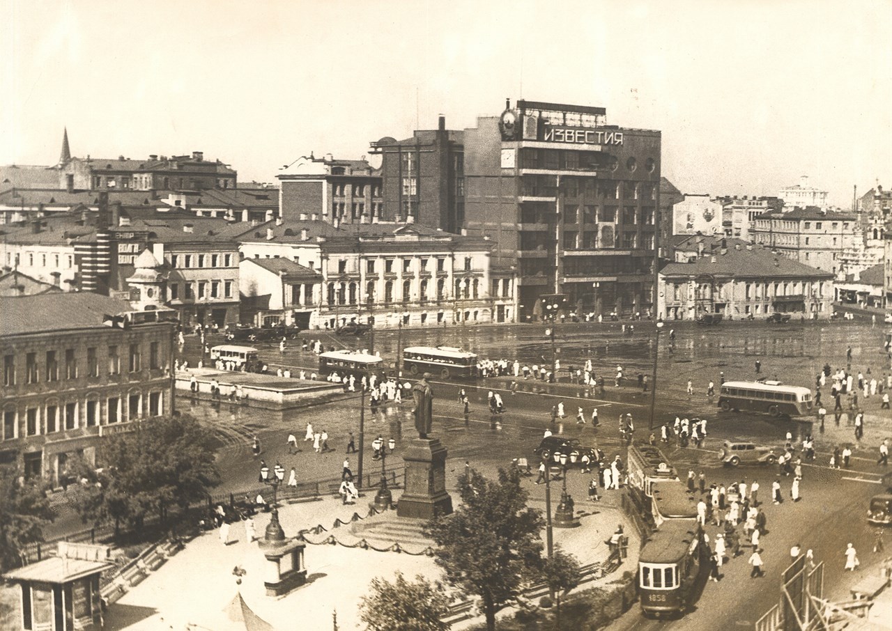 Пушкинская (бывшая Страстная) площадь после сноса Страстного монастыря. Вид с Тверского бульвара. 1938 год. Фототека ГНИМА им. А.В.Щусева