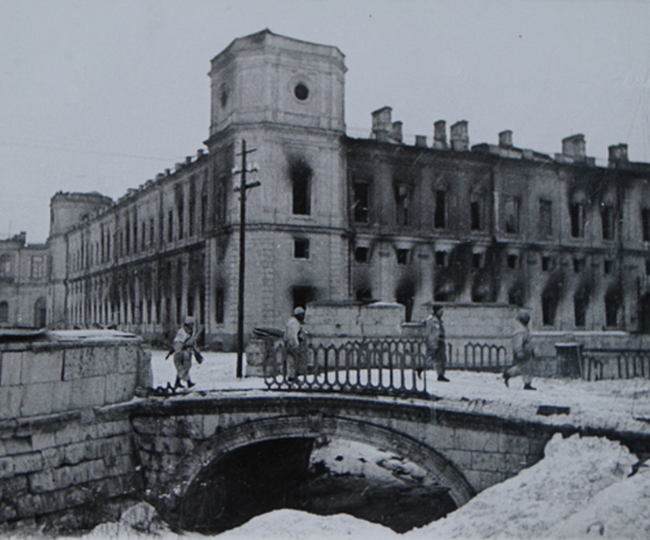 Последние дни января 1944 года были очень морозными. Температура воздуха достигала минус 20 градусов. Поэтому советские бойцы, разместившиеся под заледеневшими сводами Екатерининского дворца, разводили костры – нужно было как-то согреться. Фото: tsarselo.ru