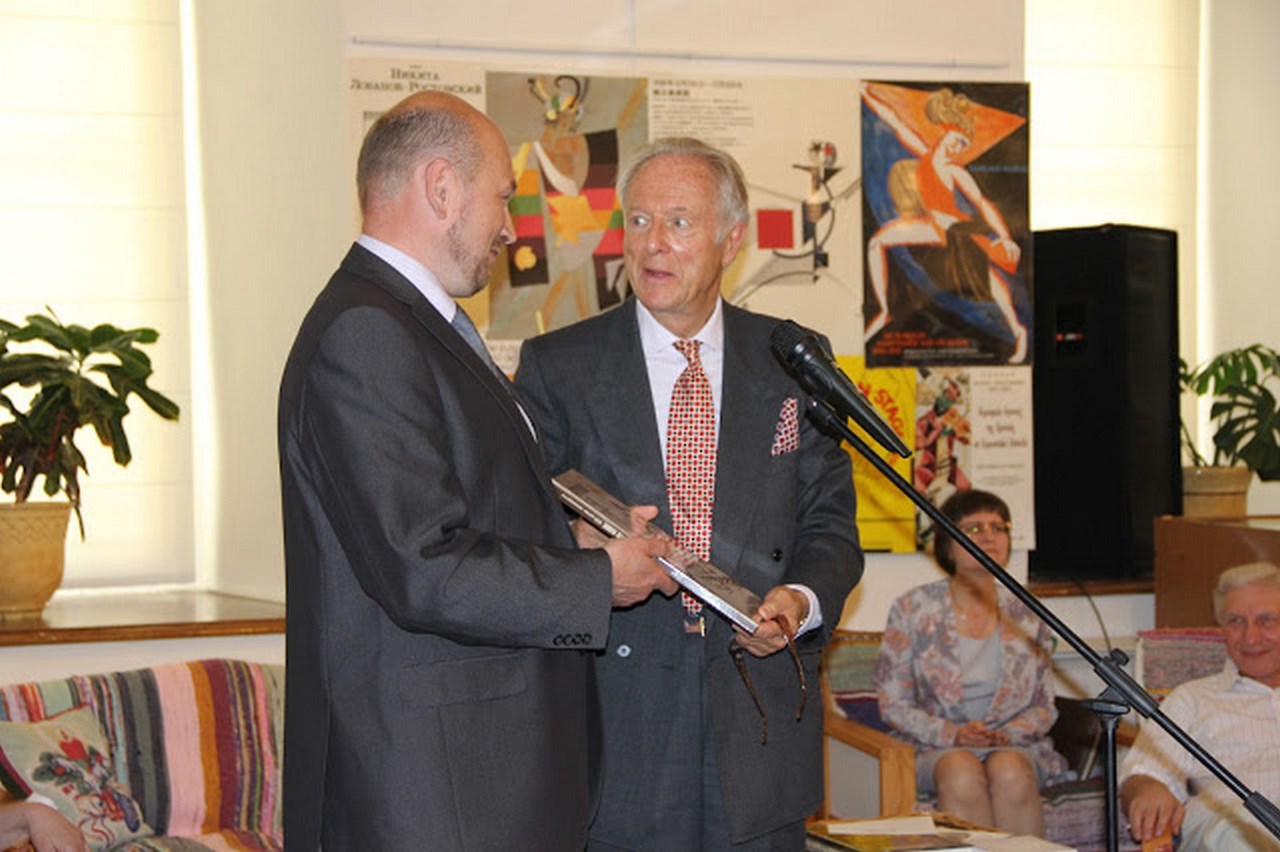 Глава города Ростова Константин Геннадьевич Шевкопляс и князь Никита Дмитриевич Лобанов-Ростовский 17 мая 2013 года на торжественном открытии выставки "Дар князя Н.Д. Лобанова-Ростовского Ростовскому музею"