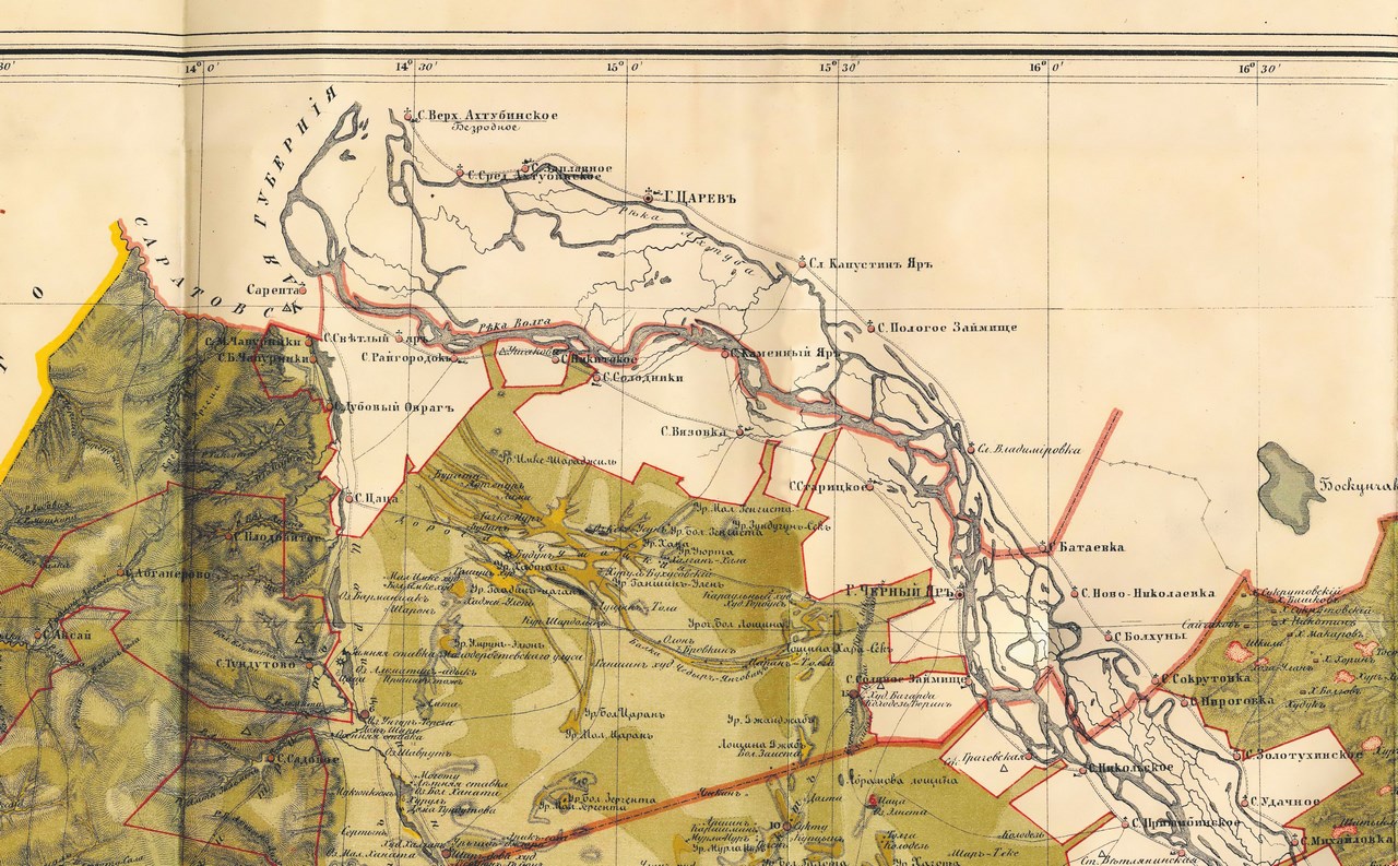 Фрагмент карты Калмыцкой степи Астраханской губернии с обозначением хозяйственного распределения земель 1864 года.