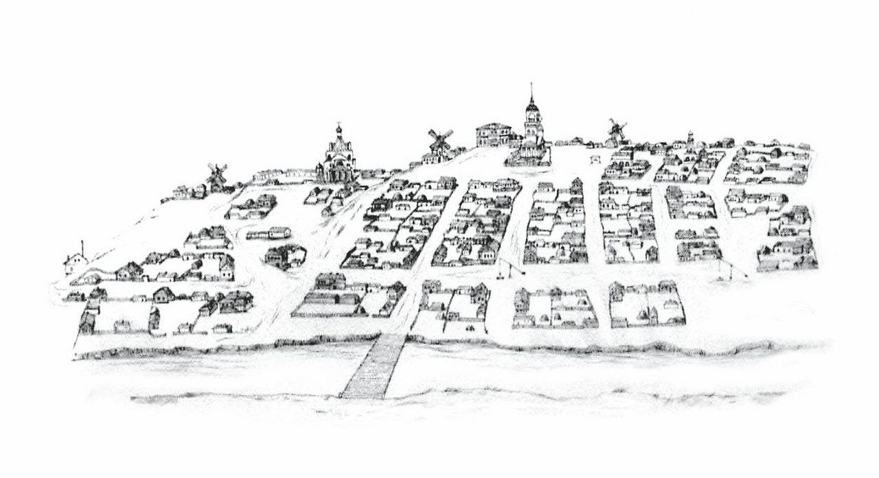Хорошо виден район парка культуры и отдыха, 23-й и 18-й кварталы: на переднем плане улица Карла Маркса с водонапорной башей, затем проспект Ленина с ДК ВГС, далее улица Фонтанная, кварталы № 10, 12, 5, 3