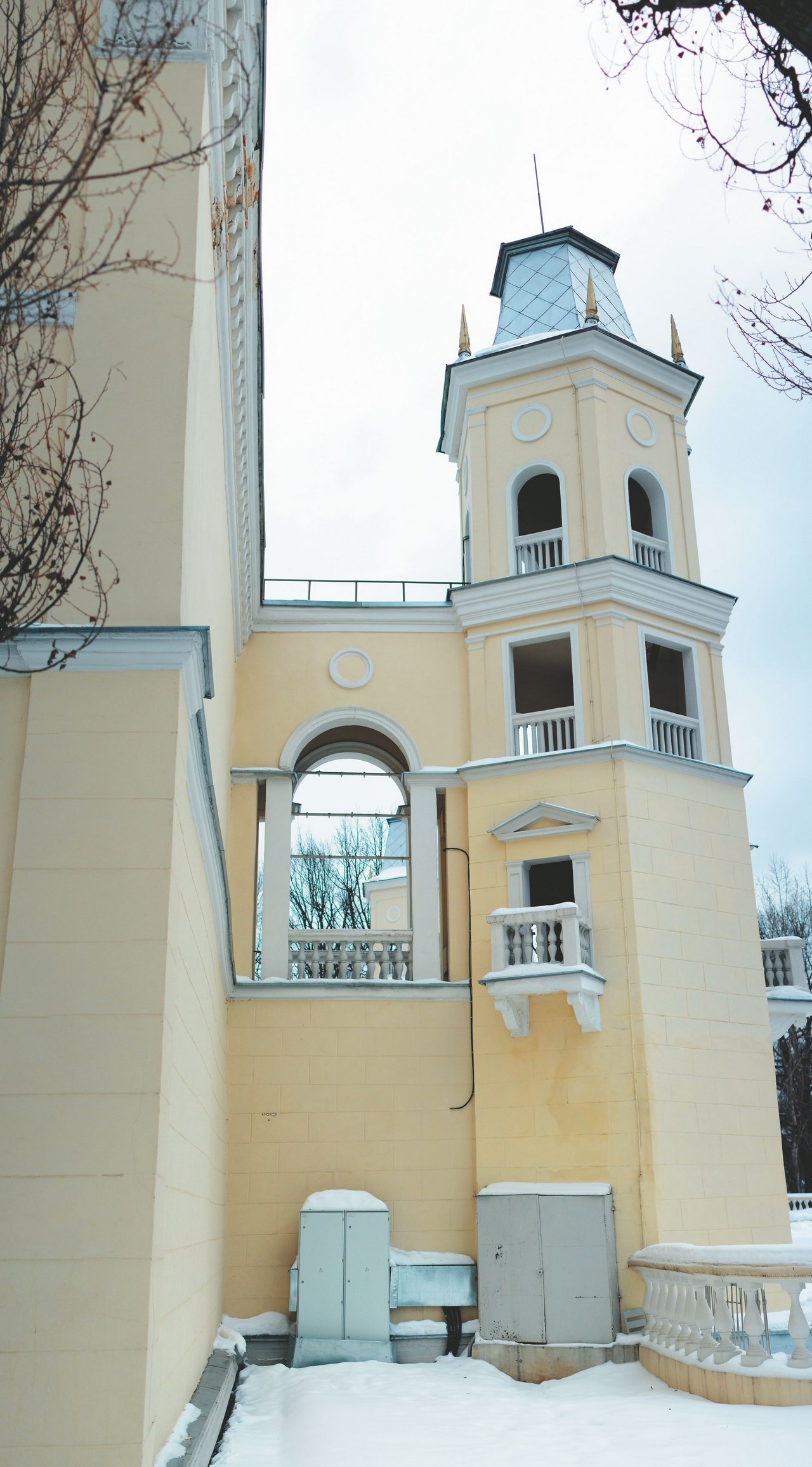 Изящное двухэтажное здание в неорусском стиле, выстроено по проекту архитектора Н. Л. Бенуа.