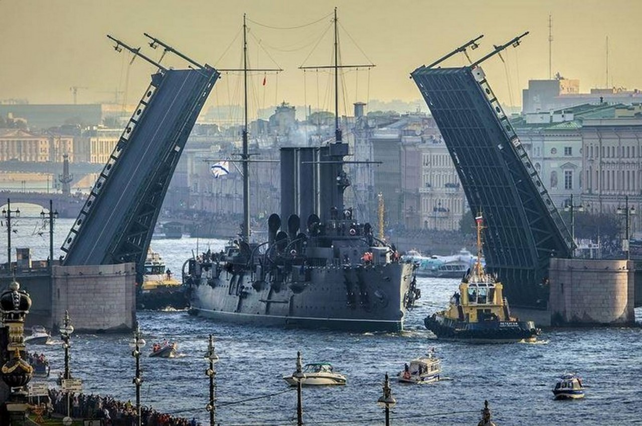 Звание первого корабля ВМФ «Аврора» носит по праву. Крейсер был спущен на воду в 1900 году в присутствии императора Николая II и императриц Марии Федоровны и Александры Федоровны, наблюдавших за церемонией из Императорского павильона. Под залпы артиллерийского салюта стоявших на Неве кораблей крейсер благополучно сошёл на воду. Во время спуска на верхней палубе корабля в составе почетного караула находился 78-летний матрос, служивший на фрегате "Аврора". Общая стоимость крейсера составила примерно 6,4 млн рублей – по меркам тех лет целое состояние. Но и ремонт легендарного крейсера в наше время оказался весьма дорогим: стоимость проведенных за два года работ оценивается в 834 миллиона рублей. За время боевой службы "Аврора" прошла более 100 тысяч миль и участвовала в трех войнах: Русско-японской, Первой мировой и Второй мировой. С 1948 года крейсер, ставший одним символом Октябрьской революции был отбуксирован на вечную стоянку. До 1956 года «Аврора» служила учебной базой Ленинградского Нахимовского училища, затем стала музеем. В 1992 году на корабле был вновь поднят Андреевский флаг.