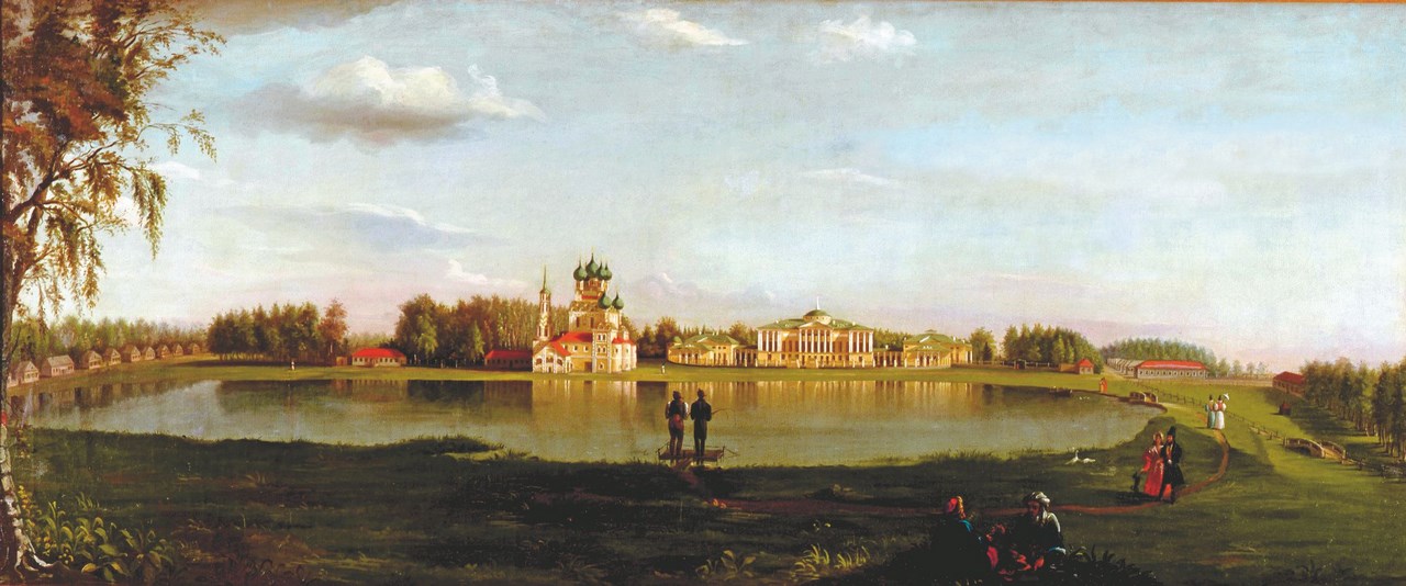 Вид из-за пруда на дворец и церковь. Н.И. Подключников, 1836 г.