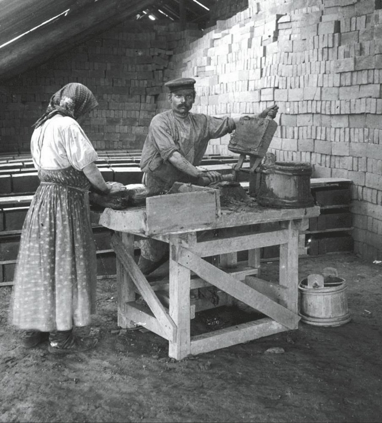 Рабочий на кирпичном заводе. Фото начала XIX в.