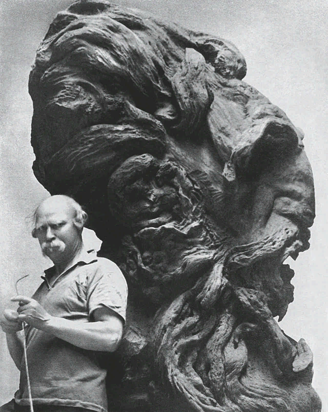 Спепан Эрьзя возле своей скульптуры «Моисей» 1947 г.