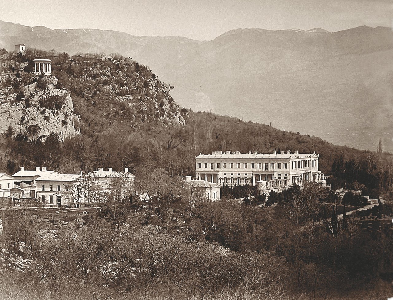 Панорамный вид на дворец в Ореанде с севера. Фото 1870-х годов.