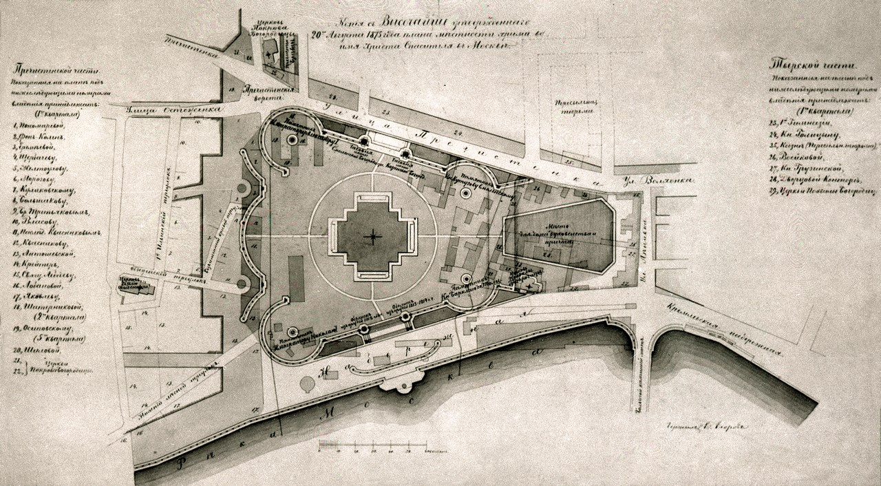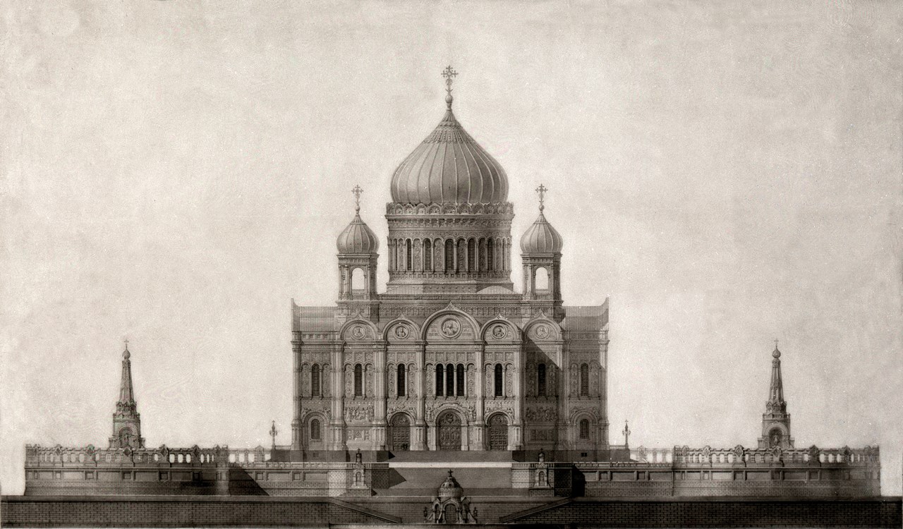 Конкурс на возведение храма выиграл архитектор Александр Витберг, предложивший создать монументальный ансамбль, выдержанный в строгих формах ампира. Сам собор должен был стать трехчастным по вертикали и символизировать Воплощение, Преображение и Воскресение. Перед архитектором стояли три задачи: чтобы храм соответствовал величию России, имел оригинальную архитектуру, а его камни «были говорящими идеями религии Христа». Проект трехъярусного храма Витберга включал в себя Пантеон погибших, колоннаду из 600 колонн из трофейных пушек, а также памятники русским монархам и знаменитым полководцам. Этот, а впоследствии переосмысленный архитектором Константином Тоном грандиозный замысел, требовал огромных финансовых вложений. Поэтому храм было решено строить всем миром. Ведь именно так, как известно, и была одержана победа в Отечественной войне. В 1812 году дворяне, купцы и мещане жертвовали все, что имели - провиант, волов и лошадей для действующей армии и для формируемых правительством военных сил. В денежном эквиваленте их вклад в победу превышал 42 миллиона рублей!