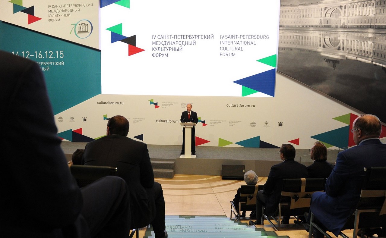 14 декабря 2015 года Владимир Путин принял участие в пленарном заседании IV Санкт-Петербургского международного культурного форума.