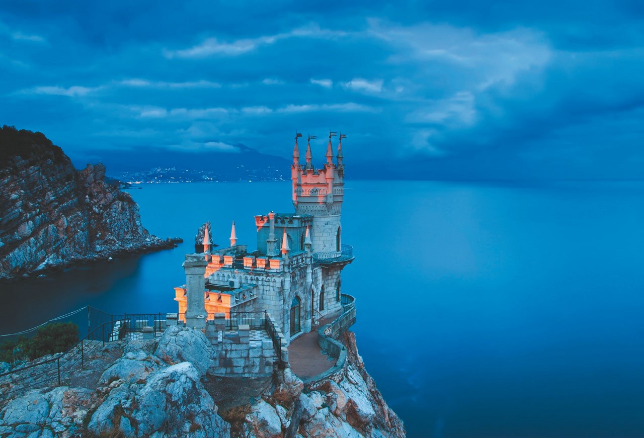 Главный символ Крыма расположился на отвесной 40-метровой Аврориной скале мыса Ай-Тодор в поселке Гаспра на Южном берегу Крыма. Усадьба была построена отставным русским генералом после Русско-турецкой войны 1877–1878 годов. Вторым хозяином стал придворный врач А.К. Тобин, через некоторое время после его смерти его вдова продала усадьбу московской купчихе Рахманиной, которая снесла старое здание и построила деревянный замок, дав ему название «Ласточкино гнездо» Позже «Ласточкино гнездо» приобрел нефтяной барон Штейнгель, и в 1912 году, по проекту скульптора Леонида Шервуда, на этом месте был воздвигнут небольшой замок в готическом стиле. В начале Первой мировой войны имение купил московский купец Павел Григорьевич Шелапутин, который открыл в замке ресторан. В скором времени купец умер, и ресторан закрылся. Здание перешло к купчихе Рохмановой, которая оформила интерьер неоготического замка в древнерусском стиле.