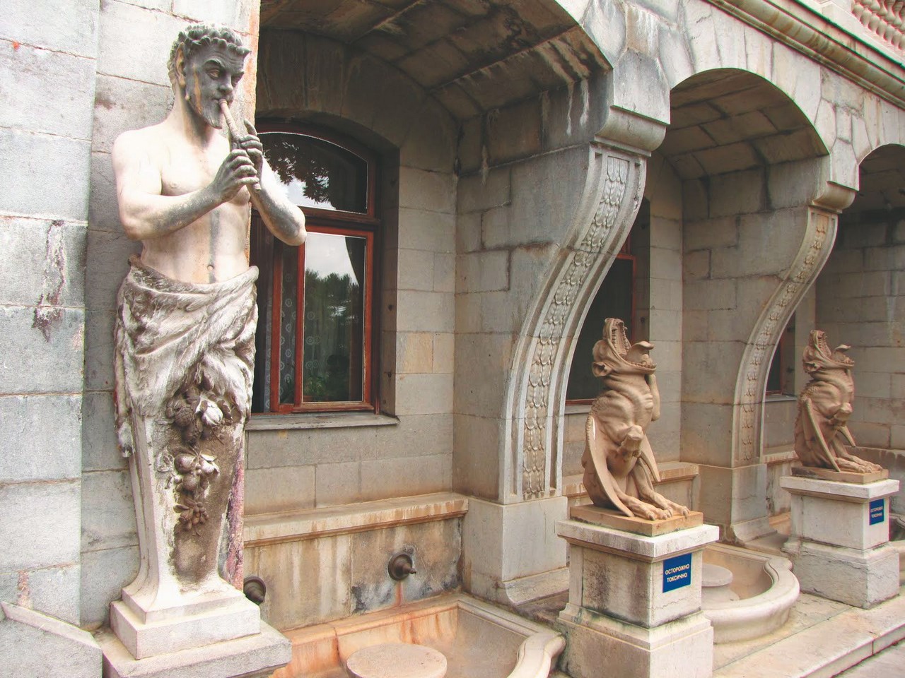 Летом 1848 года на центральной лестнице, ведущей к главному входу главного корпуса дворца, были установлены скульптурные фигуры львов, выполненные в мастерской итальянского скульптора Джованни Боннани. Львиная терраса завершила строительство и оформление дворцово-паркового ансамбля.