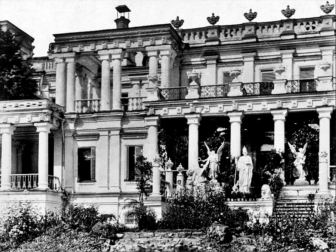 Архитектура главного дома усадьбы, построенного в 1870-1880-е годы, поражает разнообразием приемов, откровенной асимметричностью и удивительной гармонией. Это была и дворянская усадьба, и одновременно, типичная древнеримская вилла, украшенная множеством портиков, колоннад, сложными фронтонами и карнизами, пилястрами и трехгранными полуколоннами, утопавшая в море античных статуй и экзотических цветов. Воспитанница последних владельцев имения миллионеров Ярошенко Мария Заболоцкая рассказывала мужу поэту Максимилиану Волошину, что содержание одного сада, включая наём французских и английских садовников, обходилось хозяевам в 12-15 тысяч рублей ежегодно. По тем временам значительная сумма – около 18 миллионов рублей современными деньгами.