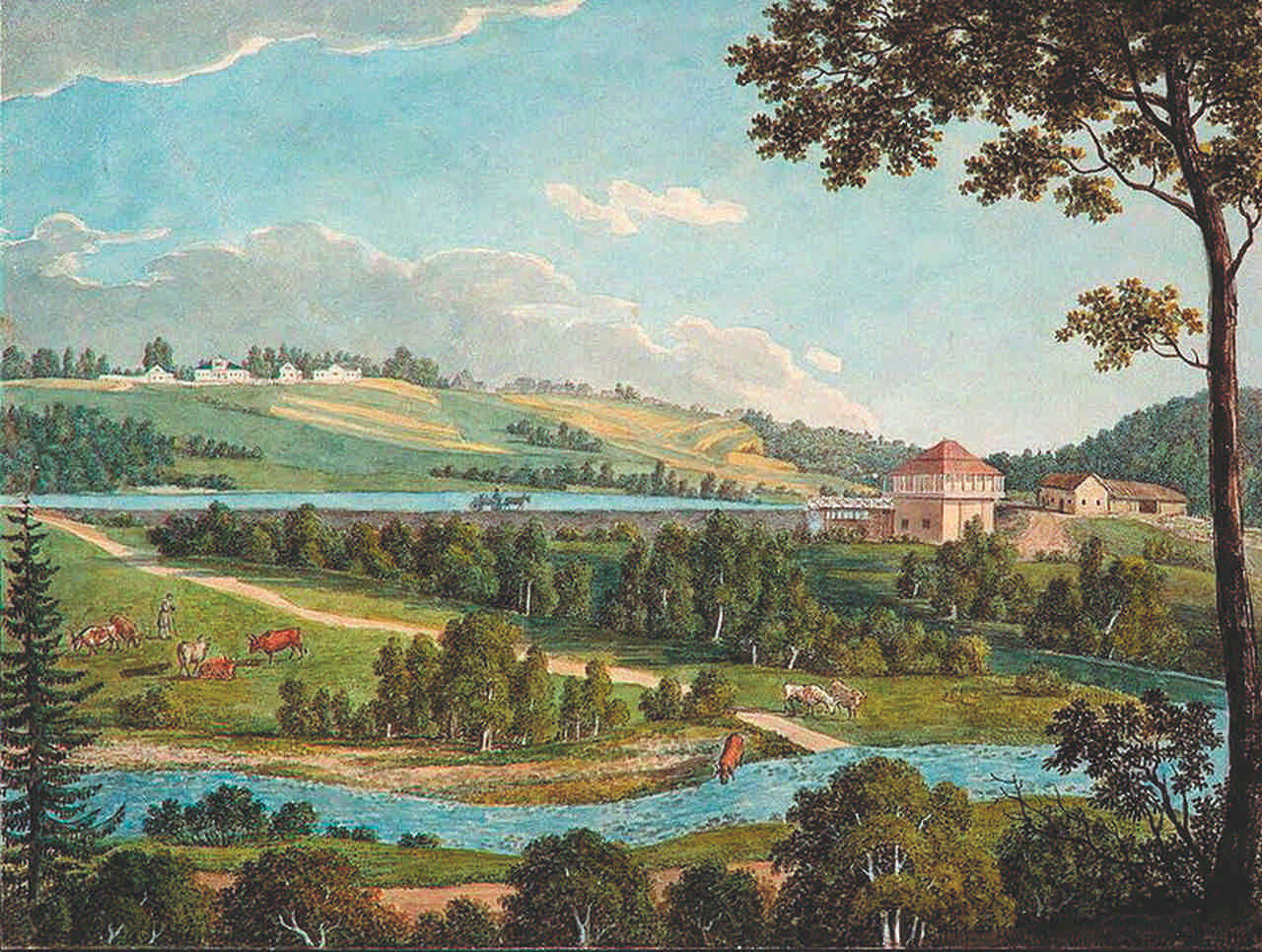 Ольгово. Вид водяной мельницы в середине XIX в.