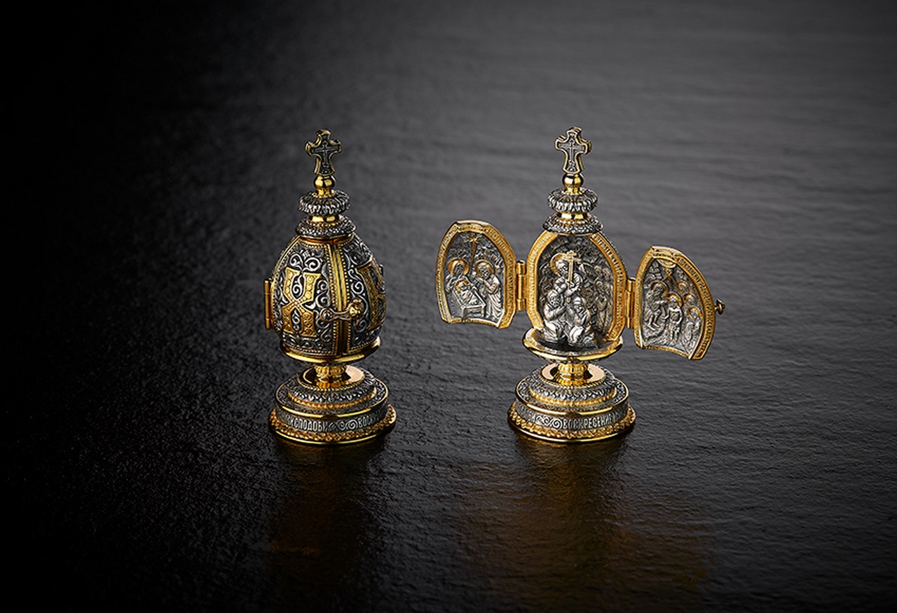 Специальный раздел к православному празднику – «Набор пасхальных яиц» – включает яйцо-складень «Боговоплощение», яйцо с образом Николая Чудотворца, «Кремлевское», «Пасхальное древо», яйца-подвесы с иконами основных двунадесятых праздников, яйца «Рождество, Крещение, Воскресение Христово», «Тайная вечеря», «Рождество Господне», композицию «Пасхальная».