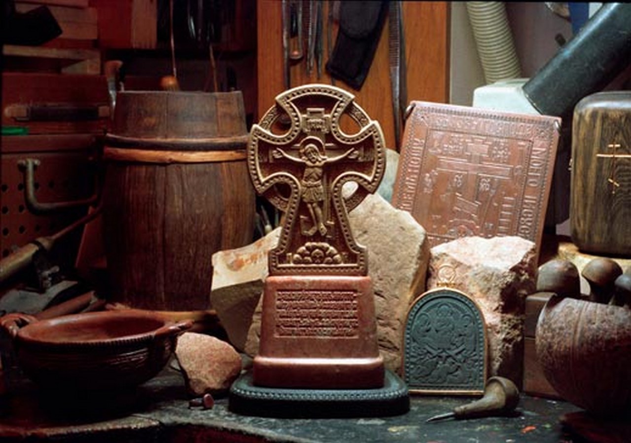 «Если камень позволяет воплощать монументальные, мощные образы, то металл дает возможность мелкой проработки деталей, изящной прорисовки тонких и легких линий. Этому материалу под силу воплощение более глубоких и сложных образов», – говорит художник.